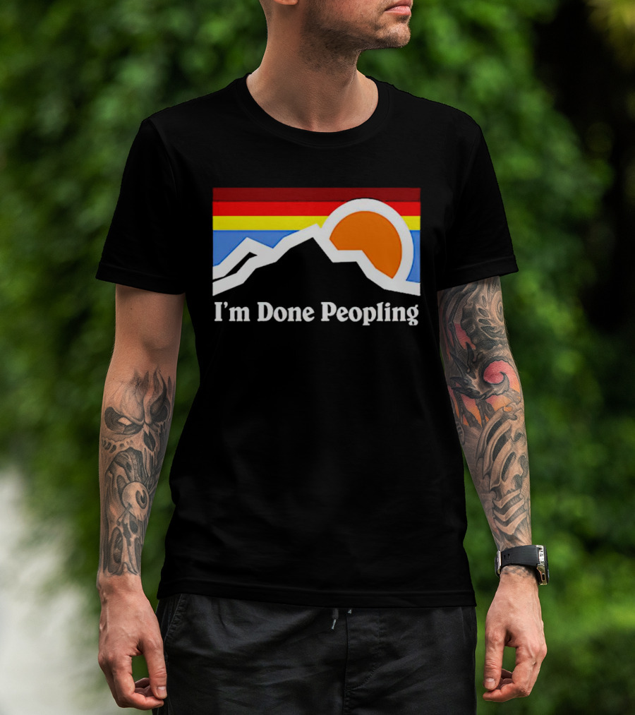 The I'm Done Peopling Retro Mountain Sunset T-shirt is designed for everyday wear and a consistent fit. Fabric is pre-shrunk ring-spun cotton with durable stitching. See the size chart below for exact measurements.