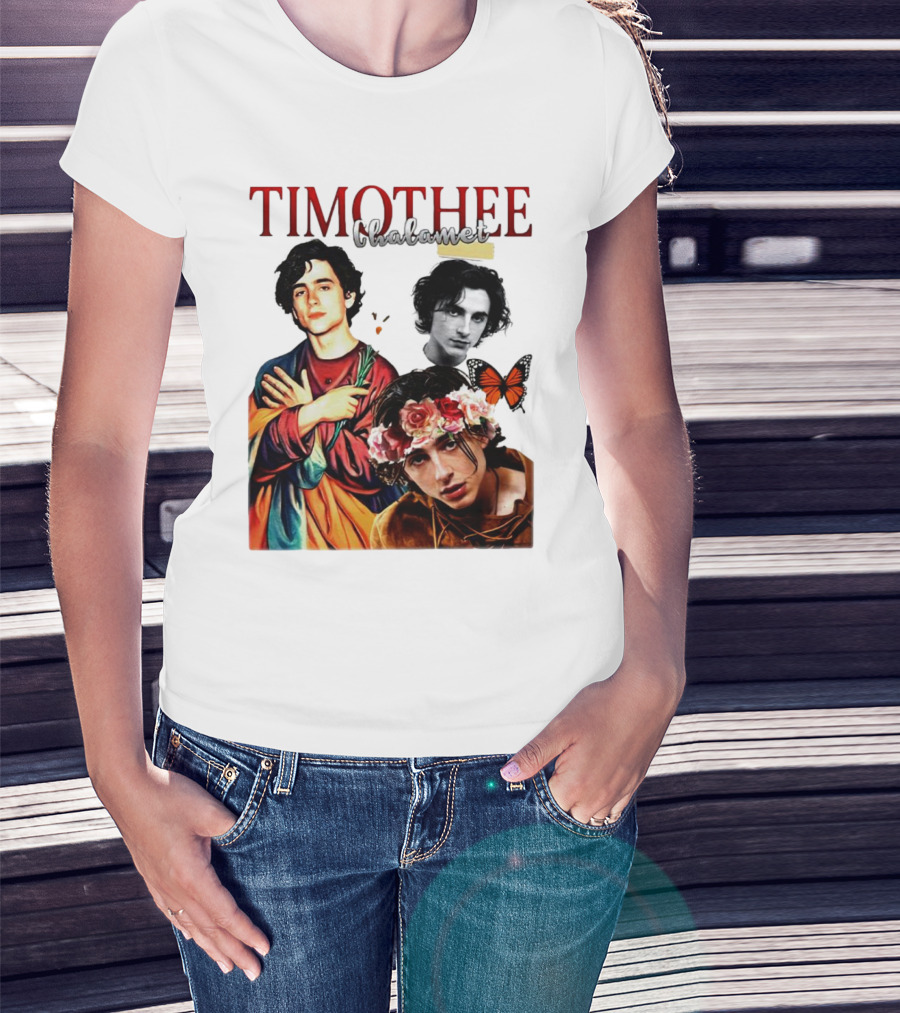 Timothee Chalamet Artistic Collage With Flowers And Butterfly T-Shirt