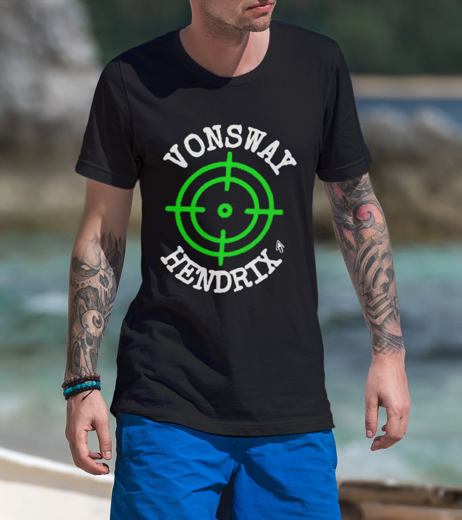 The Vonsway Hendrix Green Target T-shirt is designed for everyday wear and a consistent fit. Fabric is pre-shrunk ring-spun cotton with durable stitching. See the size chart below for exact measurements.