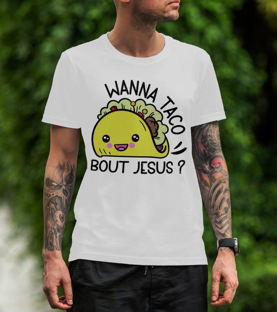 Wanna Taco Bout Jesus Cute Taco Character With Smiley Face T-Shirt