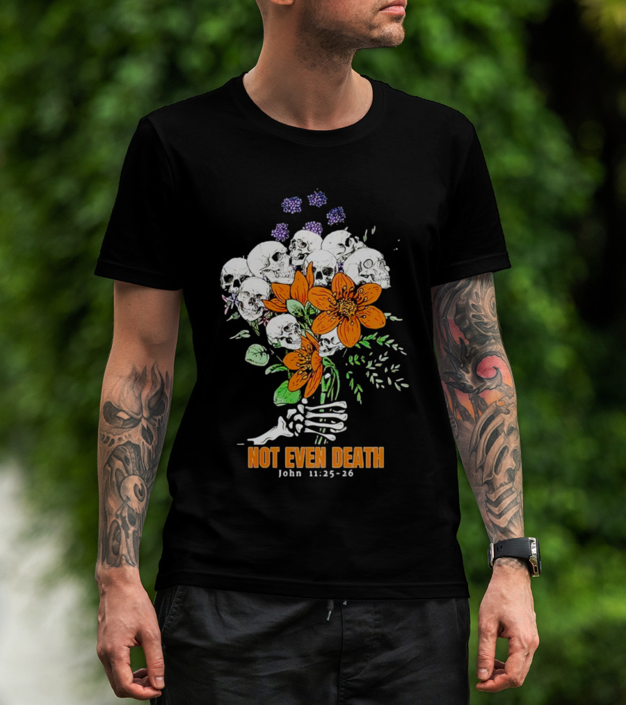 Not Even Death Skulls Flowers John 11:25-26 T-Shirt