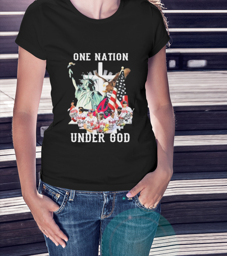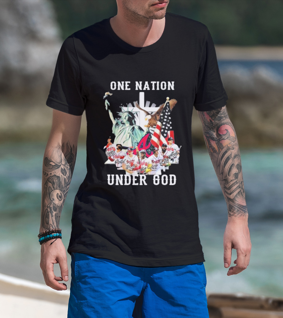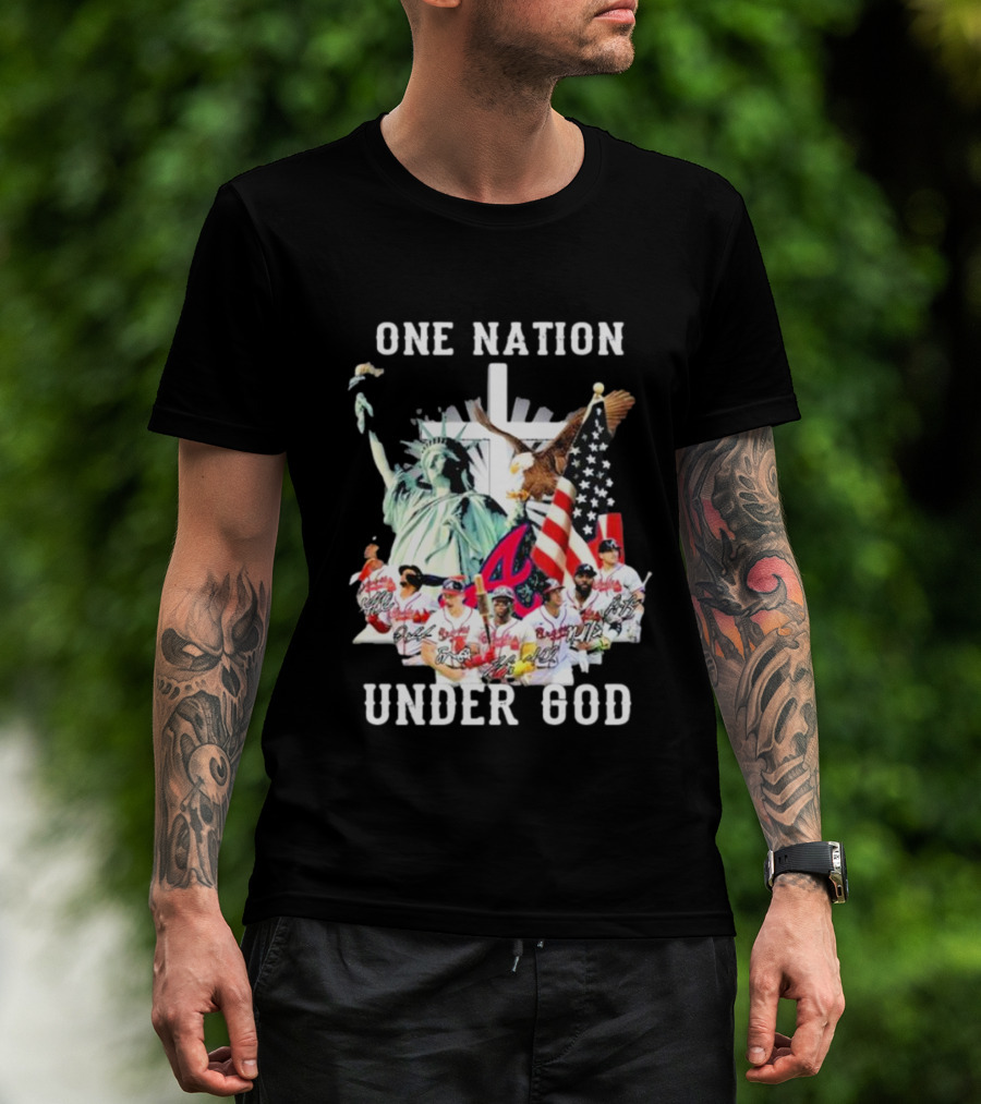 One Nation Under God Atlanta Braves American Flag Statue Of Liberty Players T-Shirt