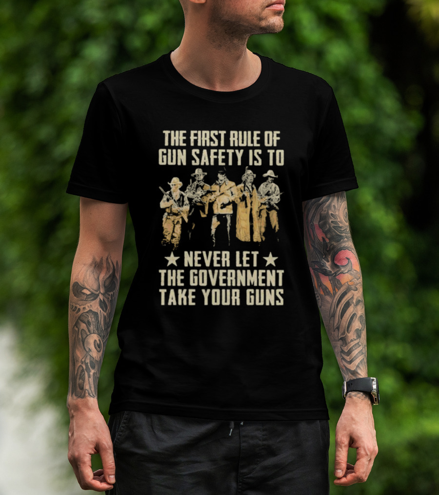 The First Rule Of Gun Safety Is To Never Let The Government Take Your Guns With Armed Western Figures T-Shirt