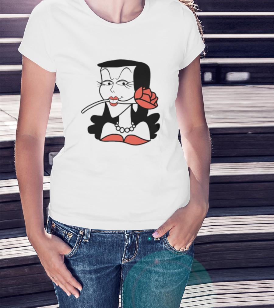 Kurt Cobain Natasha Fatale Iconic Cartoon Fusion ретро Шик меховый шарф розы T-Shirt