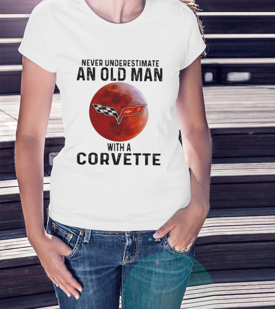 Never Underestimate An Old Man With A Corvette Blood Moon T-Shirt