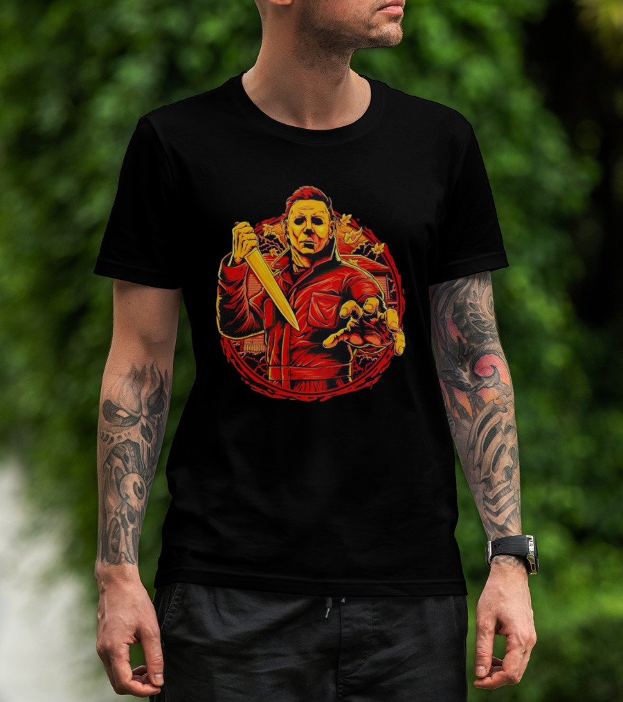 Haddonfield Horror Michael Myers With Knife Halloween Scene T-Shirt