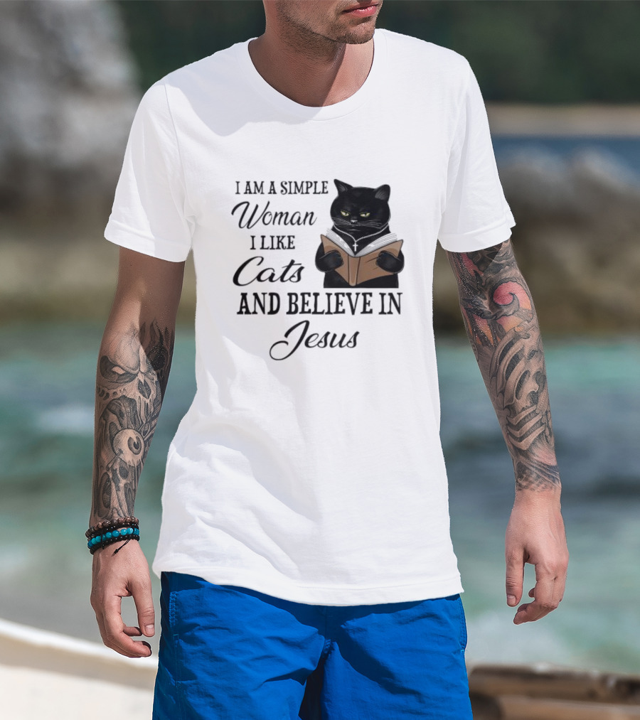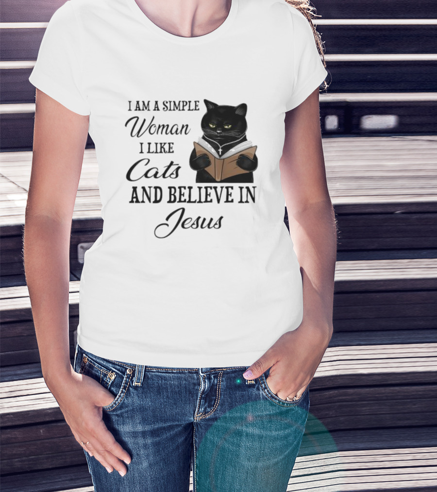 I Am A Simple Woman Who Likes Cats And Believes In Jesus T-Shirt