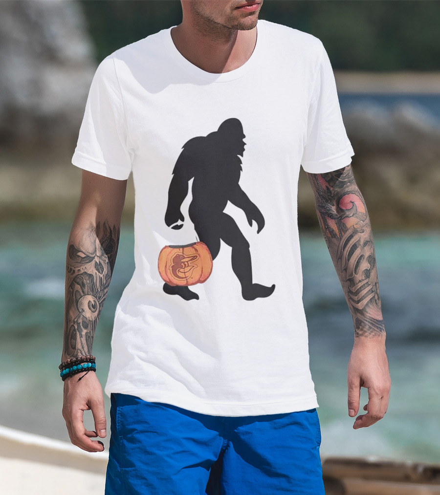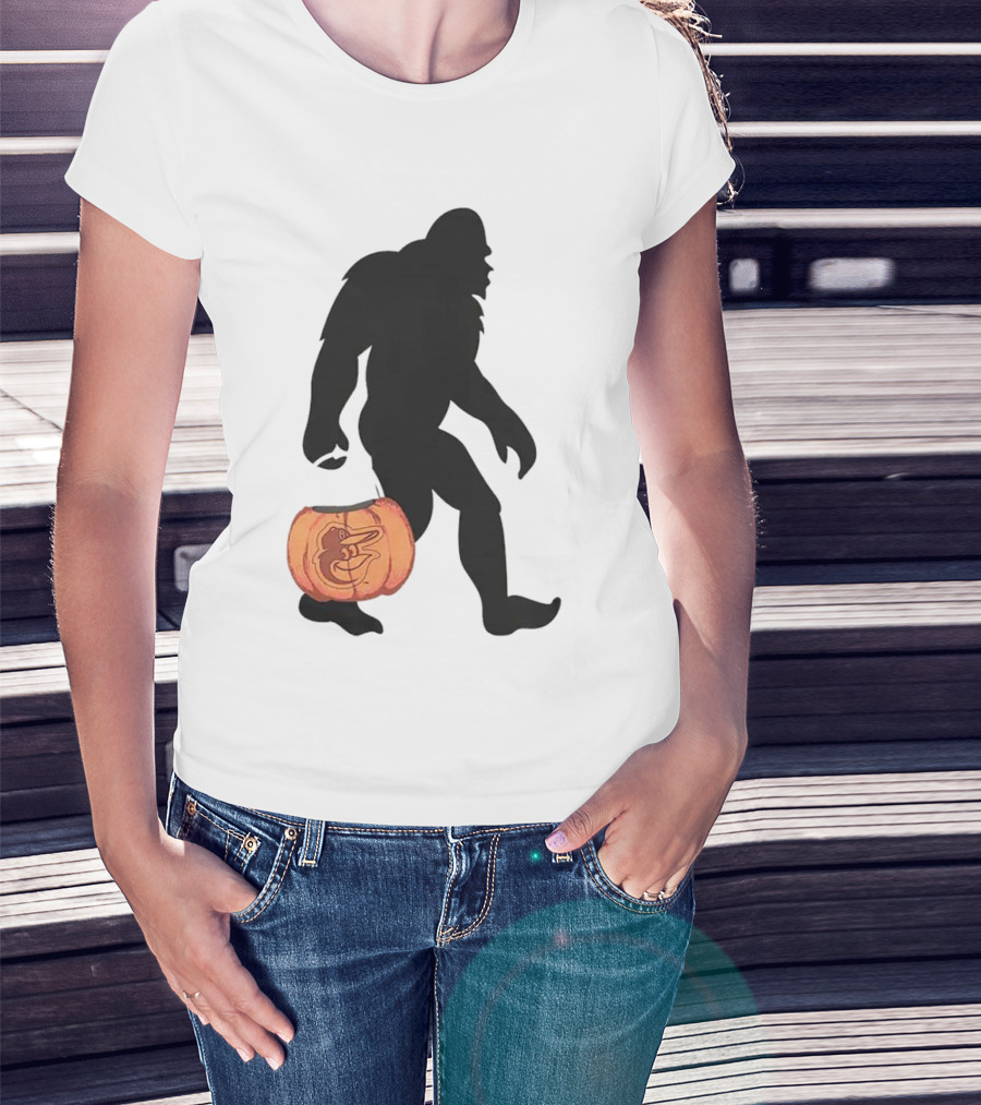 Baltimore Orioles Bigfoot Carrying Pumpkin Halloween T-Shirt