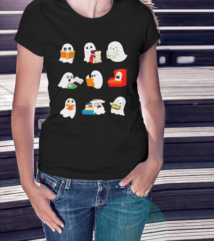 Ghosts Reading Books Halloween Spooky Library T-Shirt
