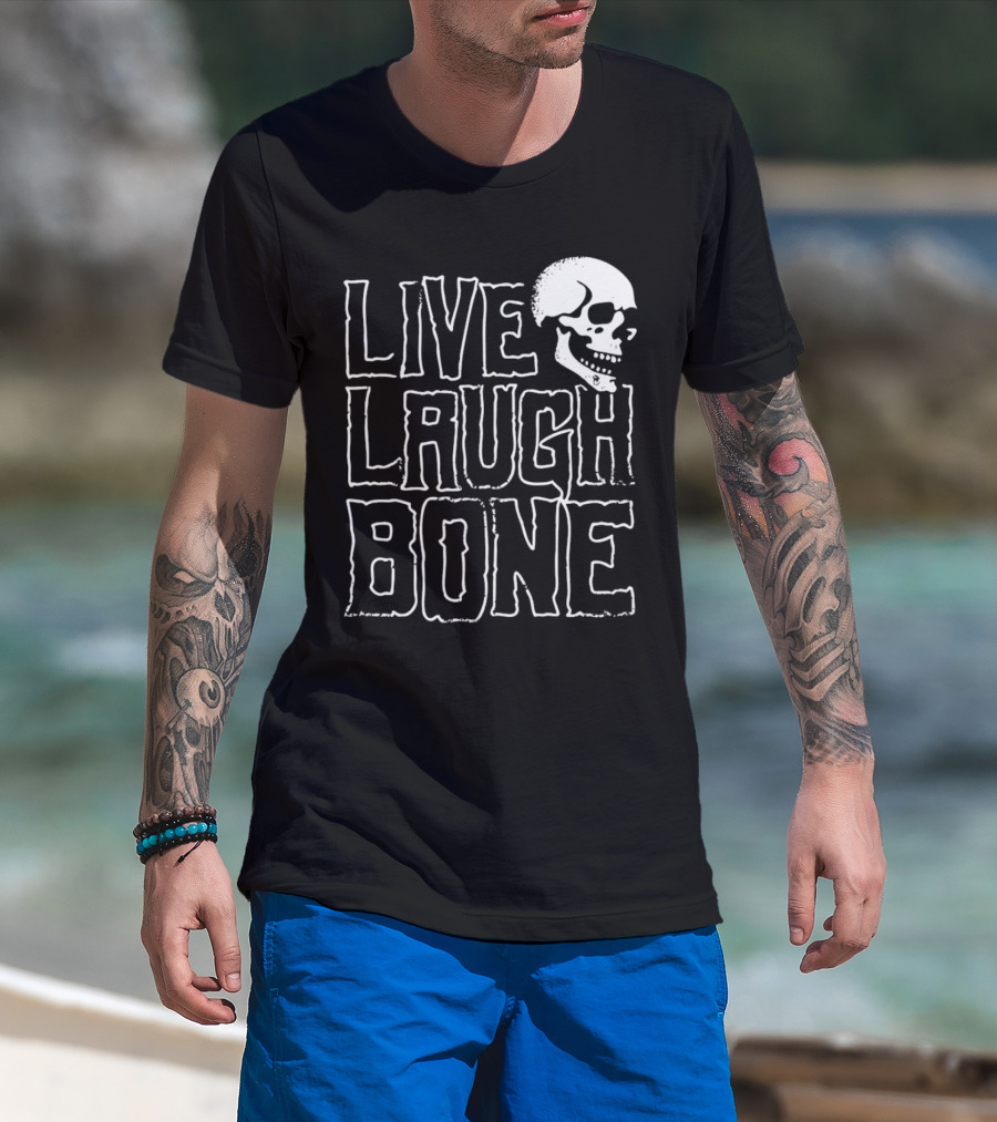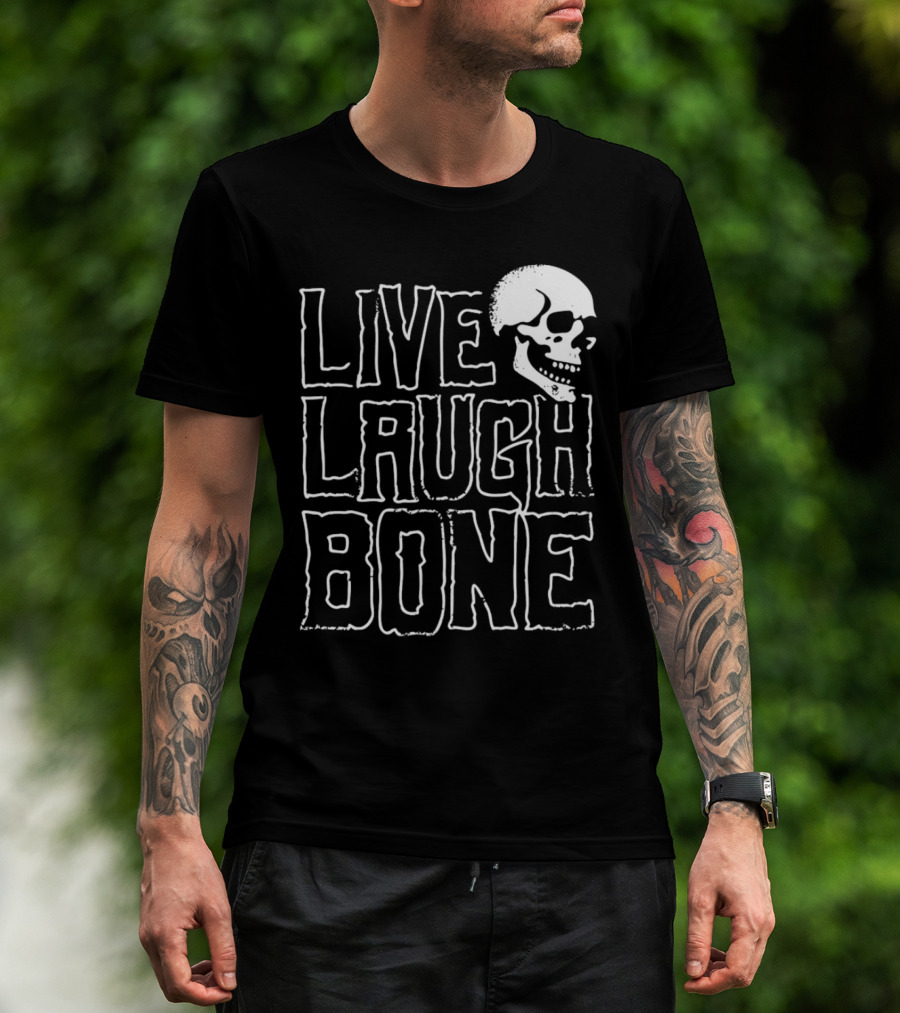Live Laugh Bone Skull Text With Skeleton Face T-Shirt