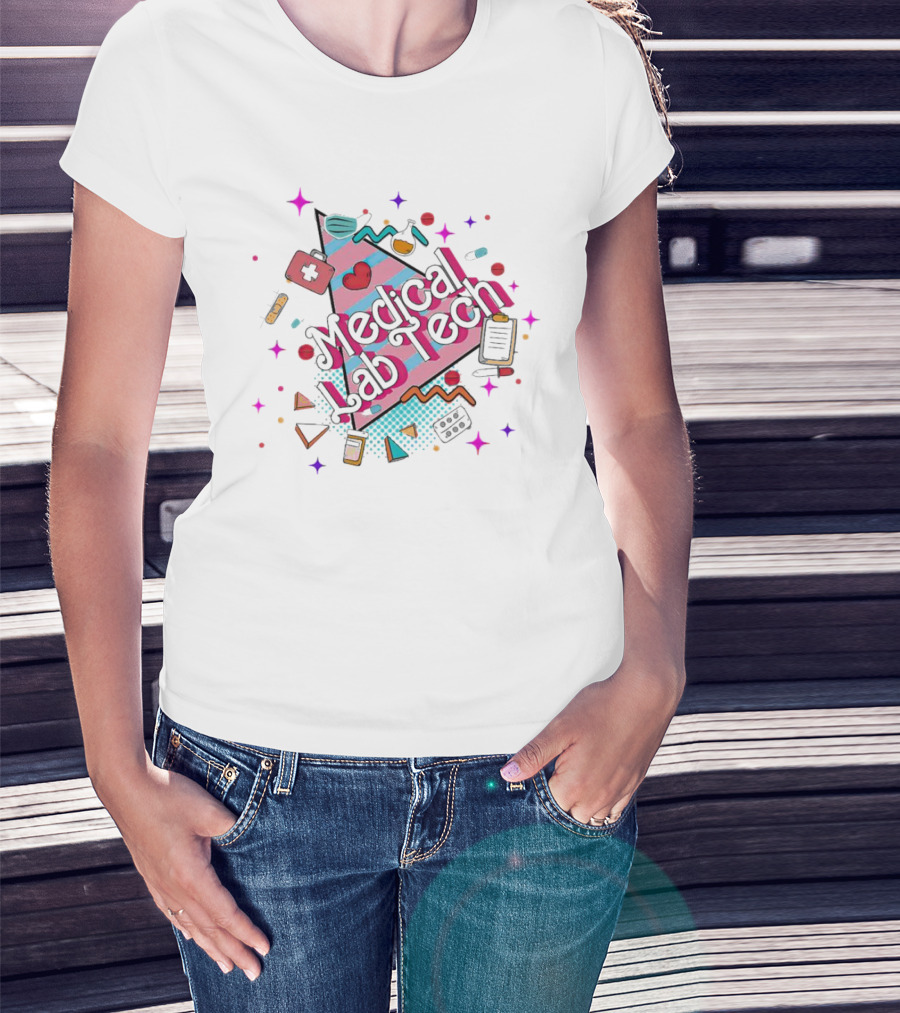 Medical Lab Tech Barbie Theme With Heart And Lab Equipment Icons T-Shirt