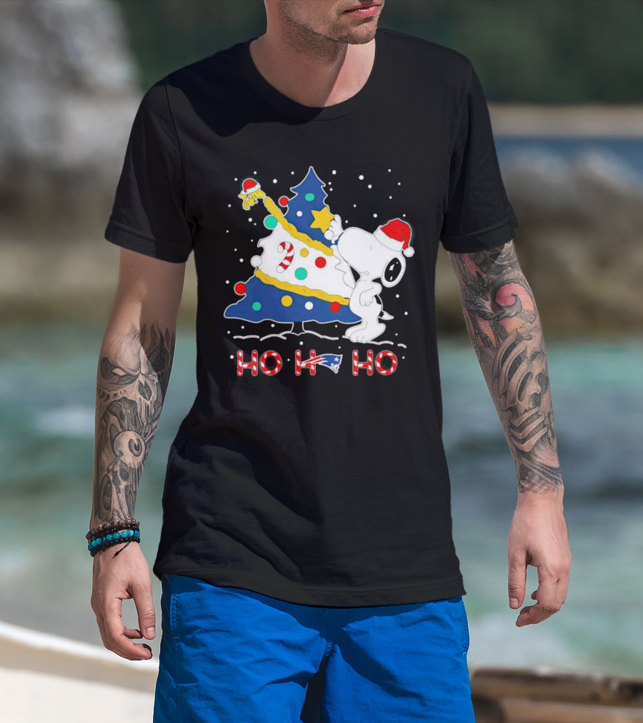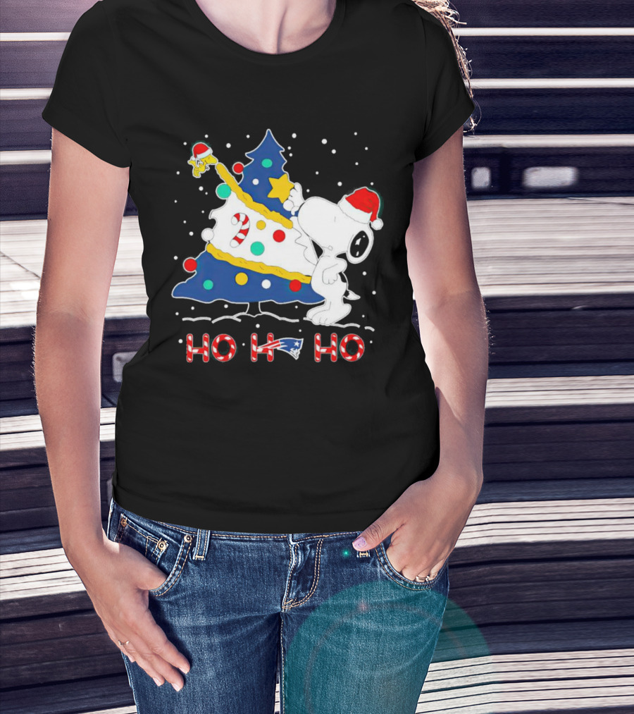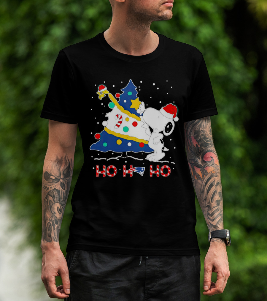 Snoopy Woodstock Decorating Christmas Tree New England Patriots Ho Ho Ho T-Shirt