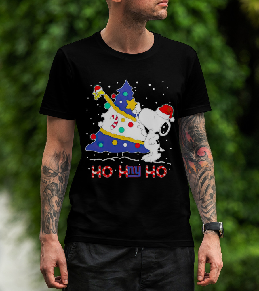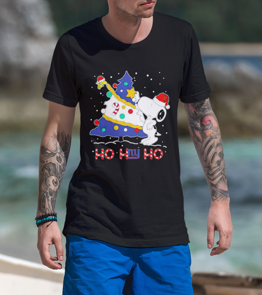 Snoopy Woodstock Christmas Tree Ho Ho Ho New York Giants T-Shirt