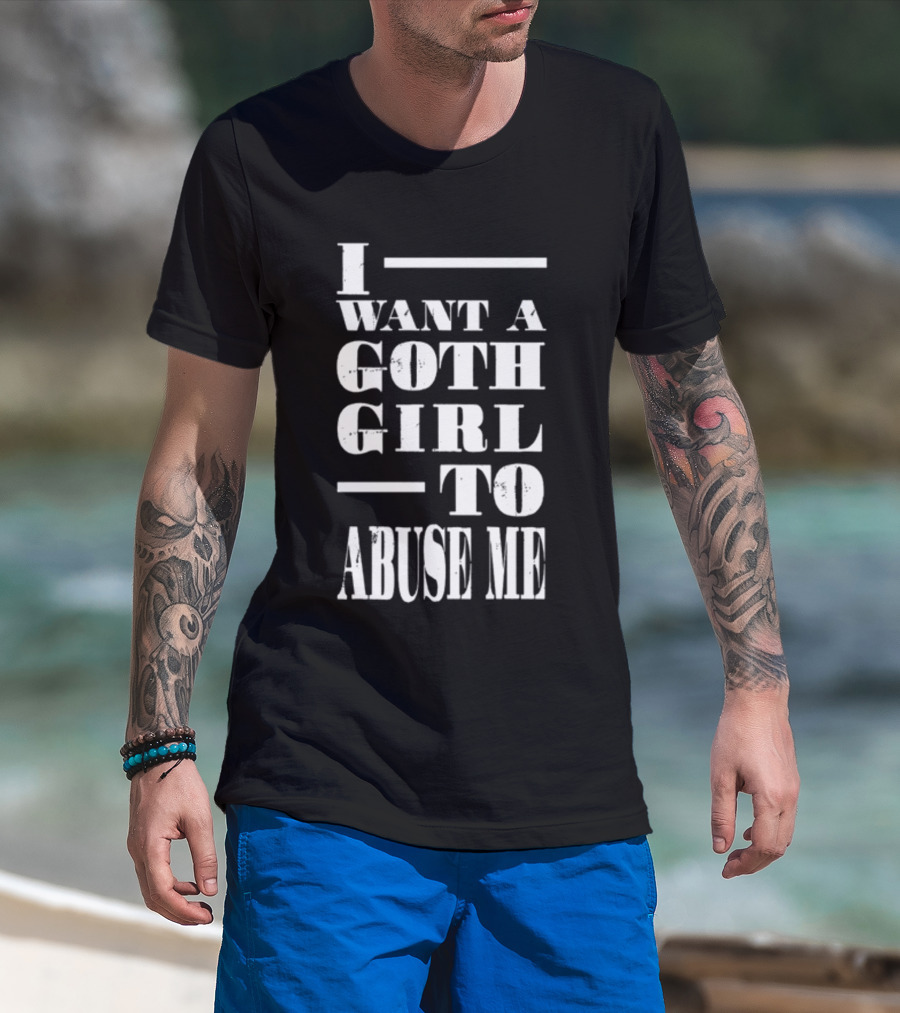 I Want A Goth Girl To Abuse Me Black And White Block Text T-Shirt