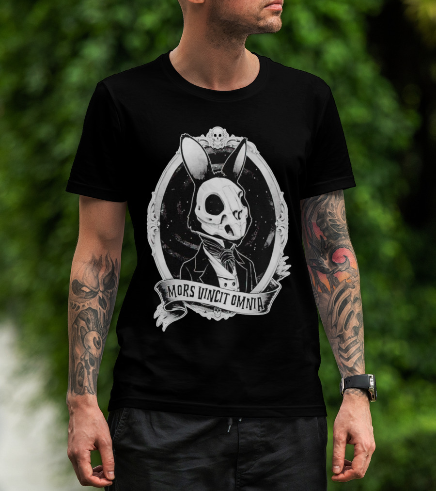 Gothic Rabbit Skeleton Portrait Mors Vincit Omnia T-Shirt