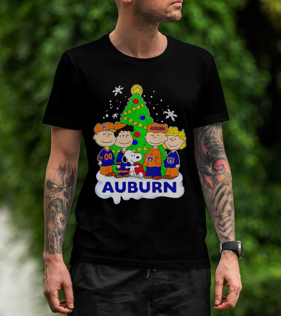 Peanuts Auburn Tigers Christmas Tree Charlie Brown Snoopy Lucy Linus T-Shirt