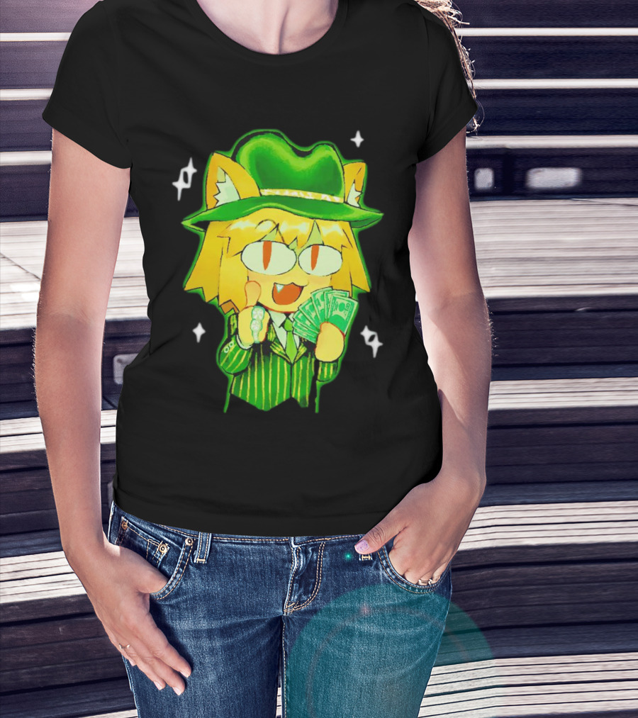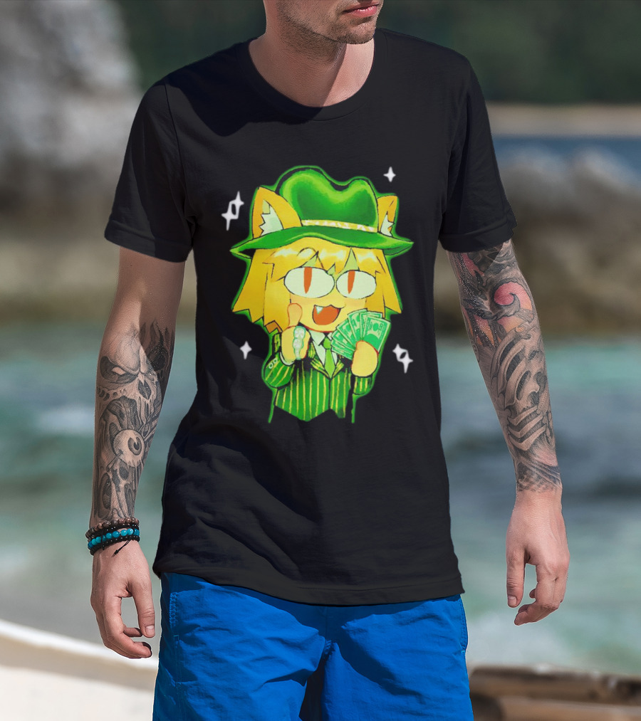 Sunny Waifu Gangster Neco-Arc Anime Cat Character With Money And Green Hat T-Shirt