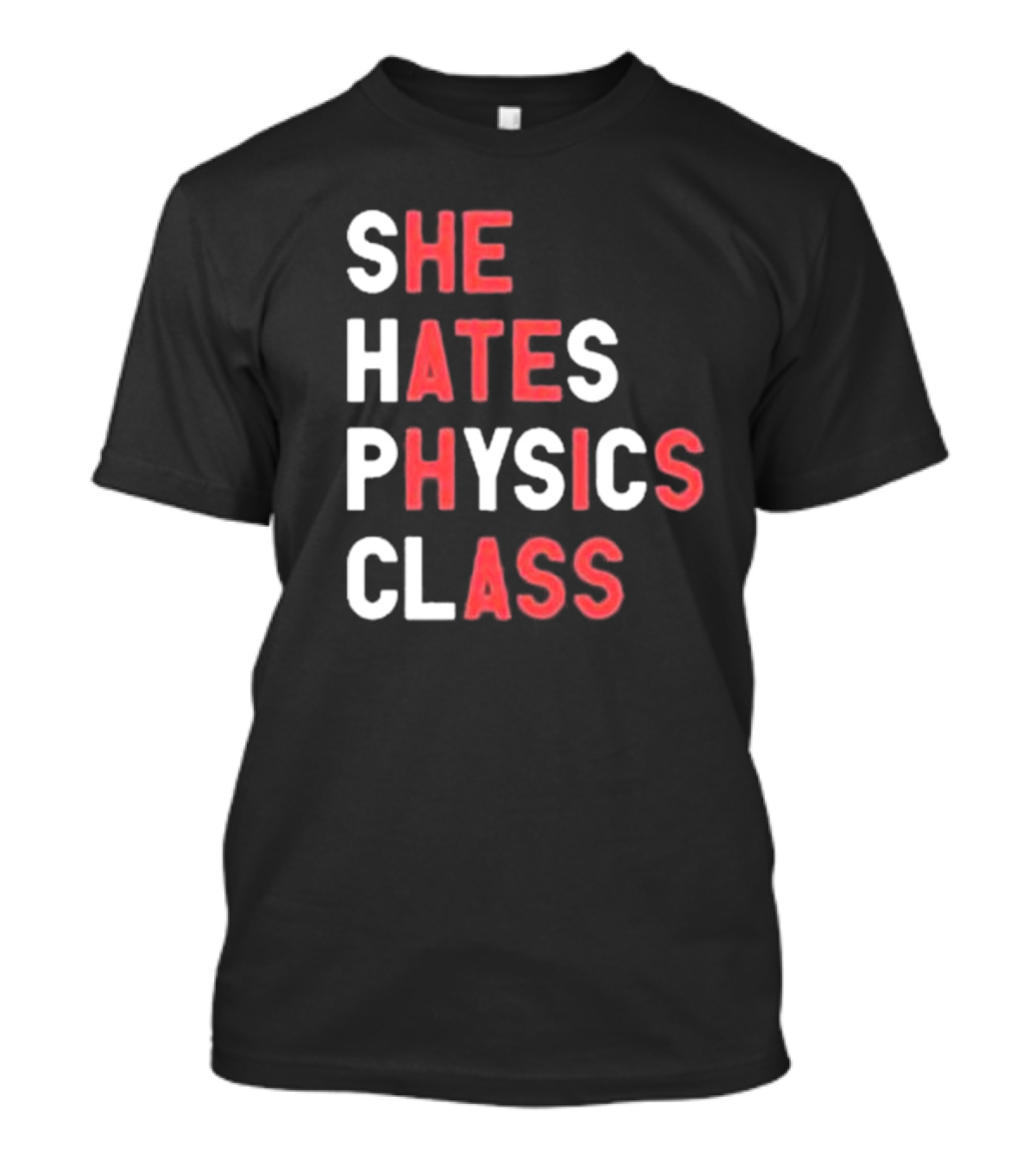 The SHE HATES PHYSICS CLASS T-shirt is designed for everyday wear and a consistent fit. Fabric is pre-shrunk ring-spun cotton with durable stitching. See the size chart below for exact measurements.