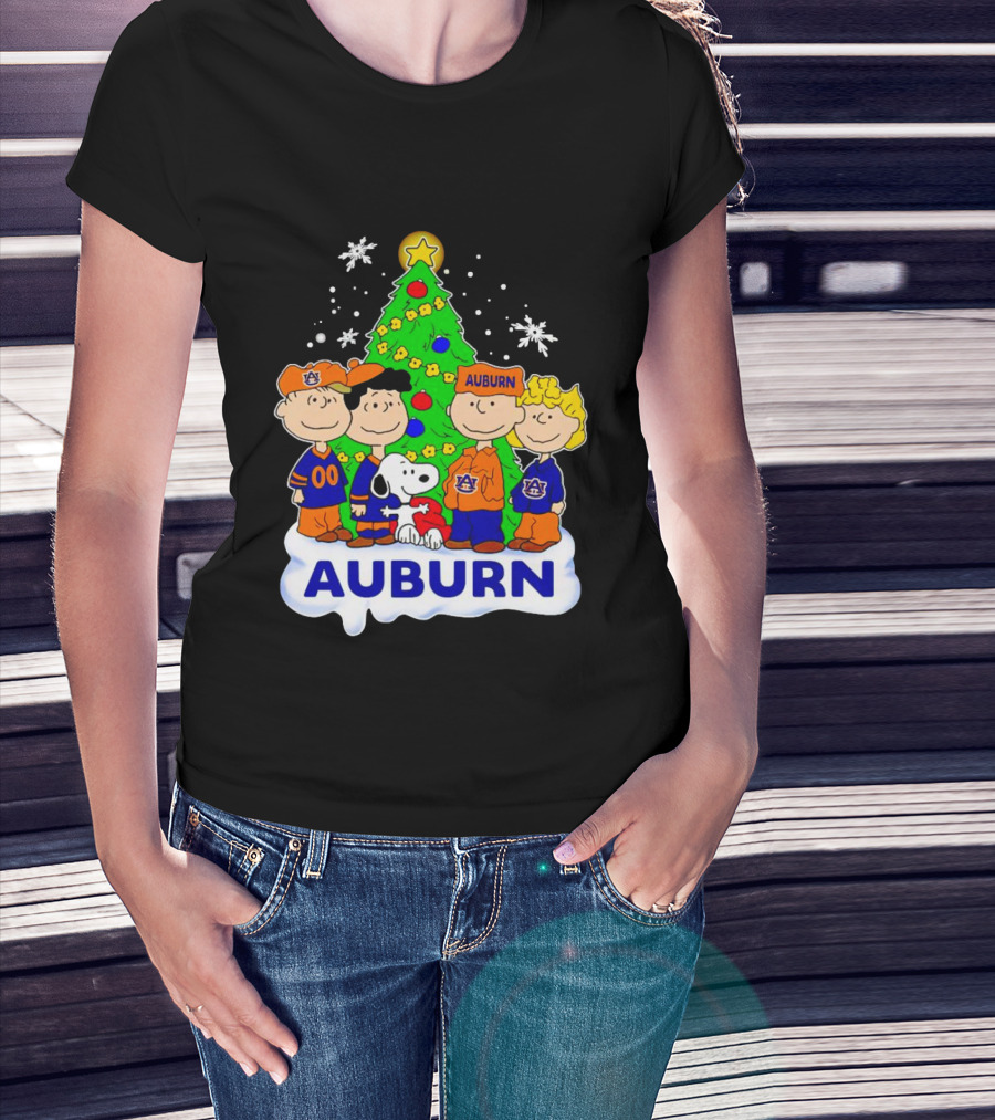 Auburn Tigers Peanuts Characters Christmas Tree Snoopy Charlie Brown Woodstock T-Shirt