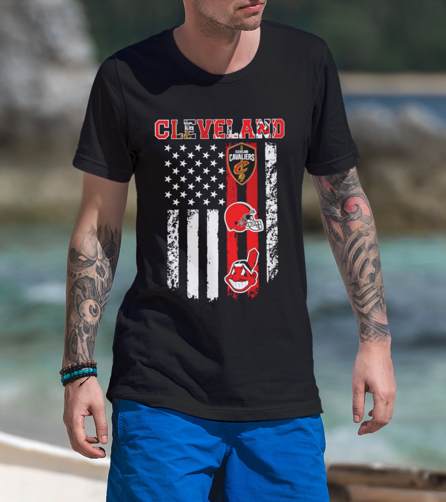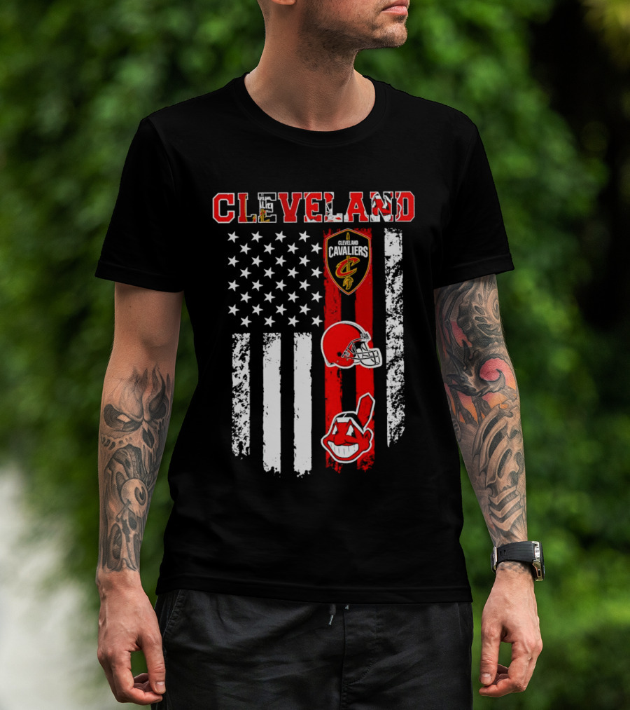 Cleveland Cavaliers Browns Guardians American Flag T-Shirt