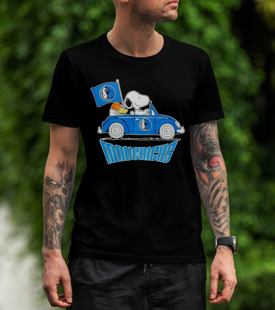 Mavericks Basketball Snoopy Driving Car With Logo Flag T-Shirt