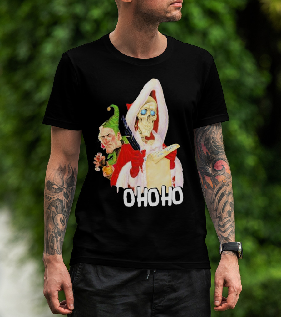 Death With Albert Skeleton Santa And Grumpy Elf Ho Ho Ho T-Shirt
