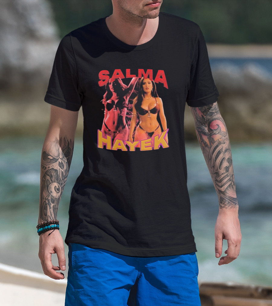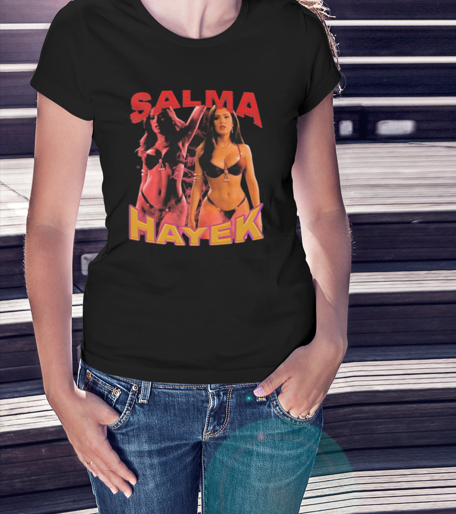 The Salma Hayek Retro Style Double Image T-shirt is designed for everyday wear and a consistent fit. Fabric is pre-shrunk ring-spun cotton with durable stitching. See the size chart below for exact measurements.