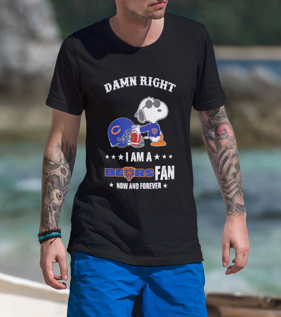 Damn Right I Am A Bears Fan Now And Forever Snoopy Chicago Bears T-Shirt