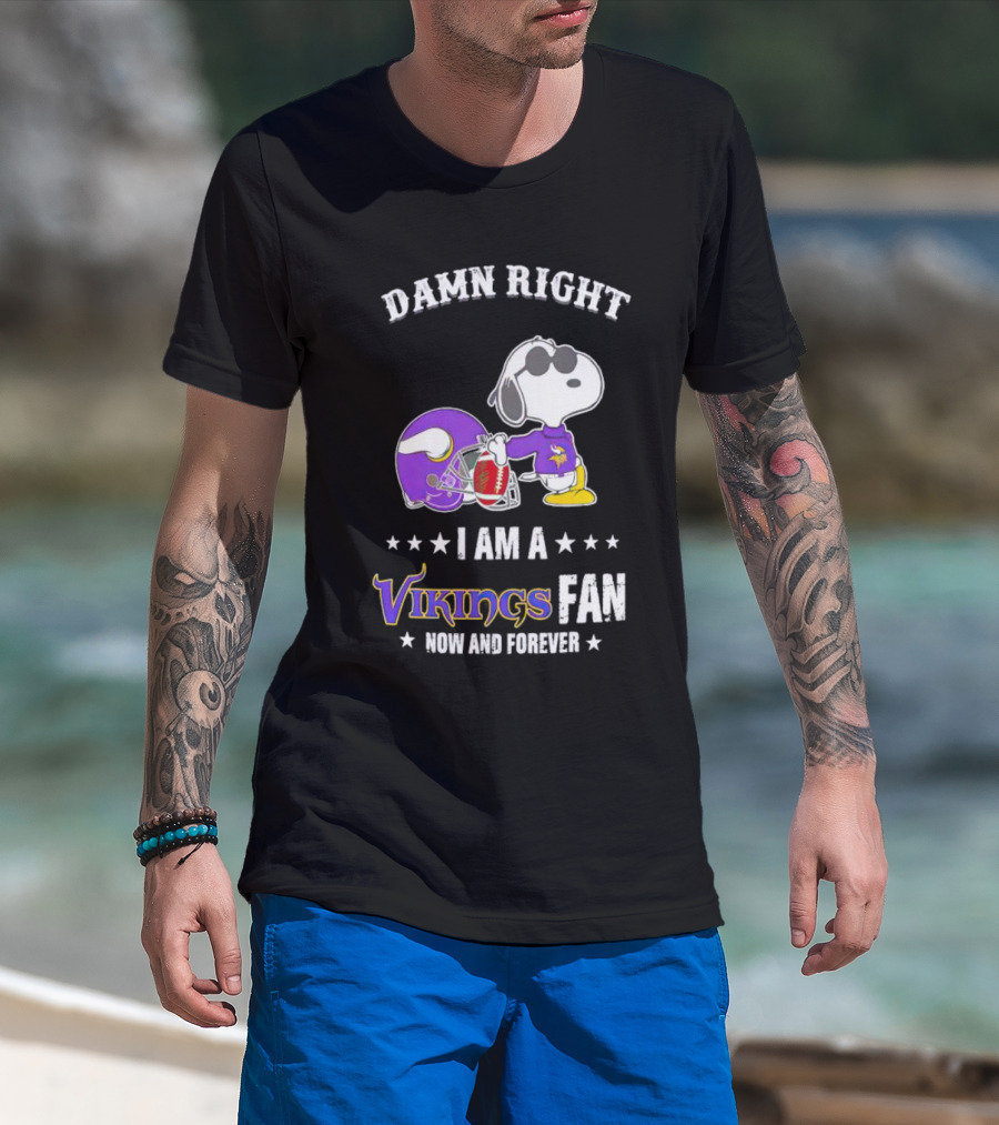 Snoopy Damn Right I Am A Vikings Fan Now And Forever T-Shirt
