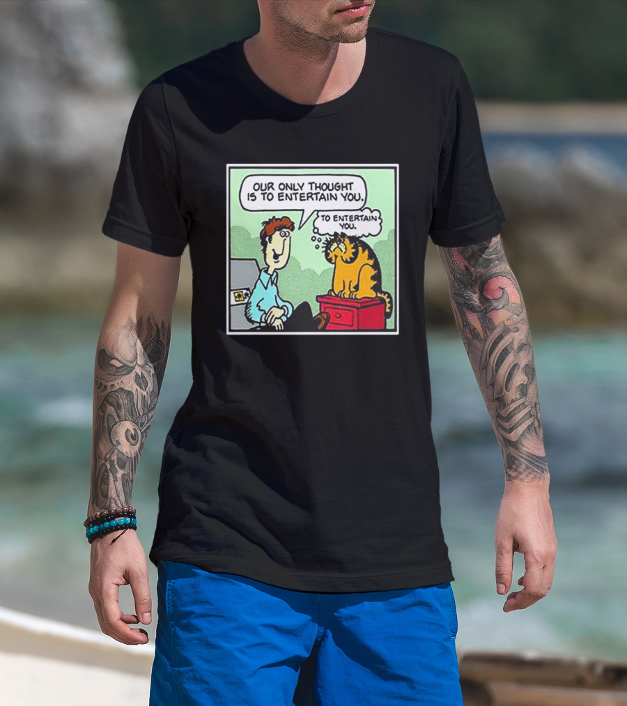Jon And Garfield Speech Bubble Comic Our Only Thought Is To Entertain You T-Shirt