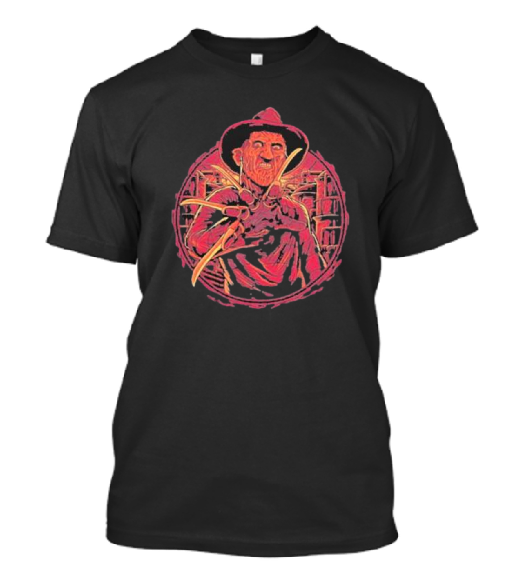 The The Elm Street Slasher Nightmare Icon Freddy Krueger Claw T-shirt is designed for everyday wear and a consistent fit. Fabric is pre-shrunk ring-spun cotton with durable stitching. See the size chart below for exact measurements.