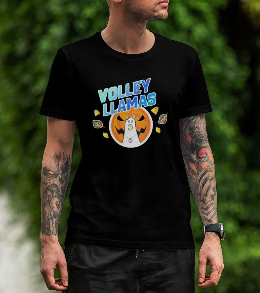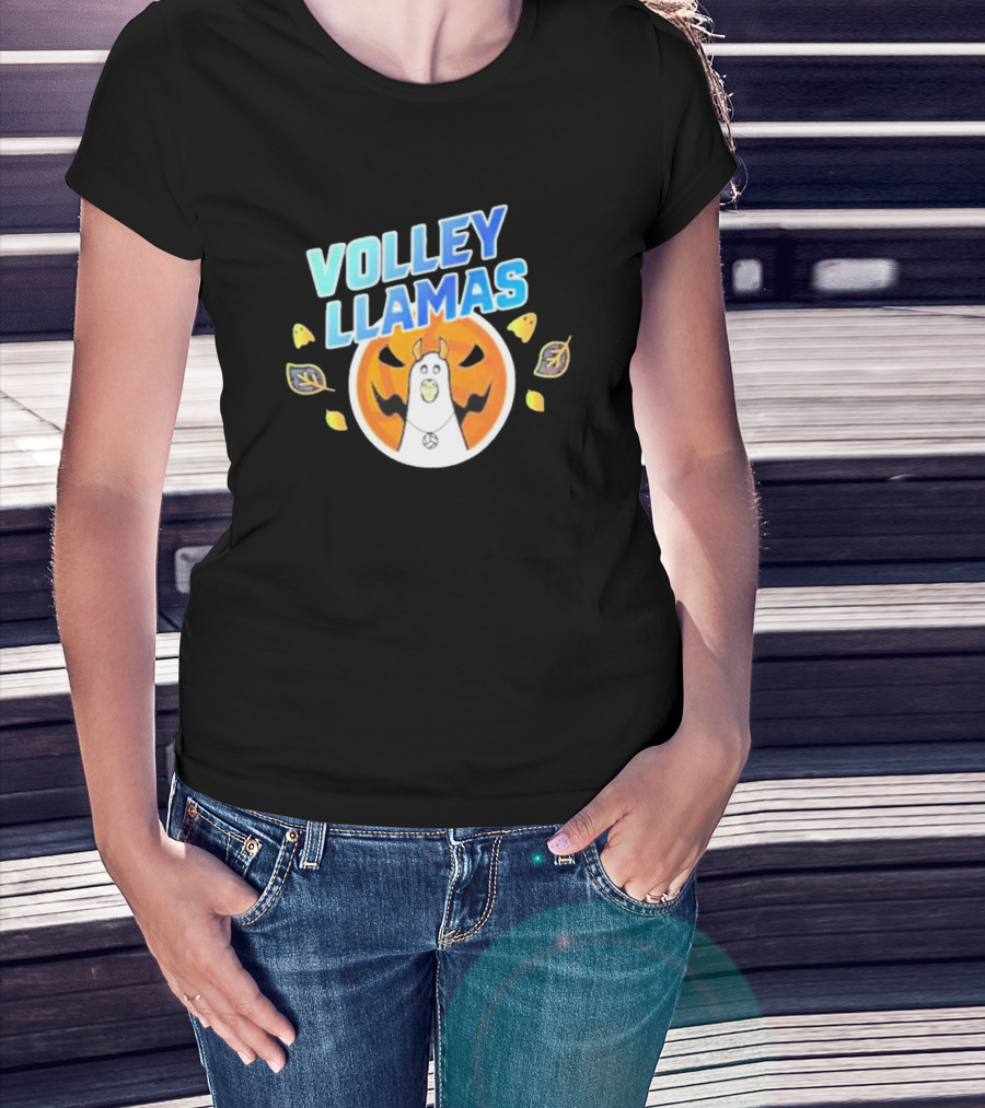 Volley Llamas With Pumpkin And Autumn Leaves T-Shirt