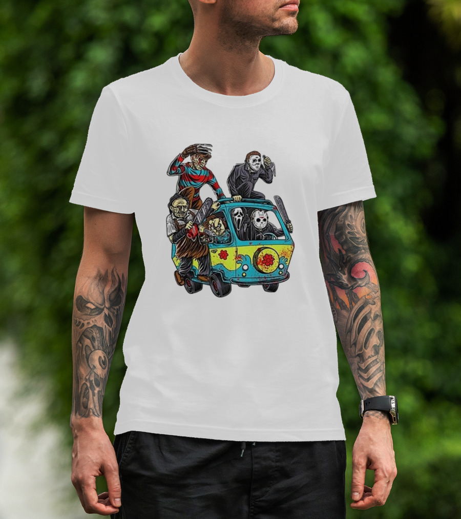 Horror Movie Characters Spooky Van Halloween Adventure T-Shirt