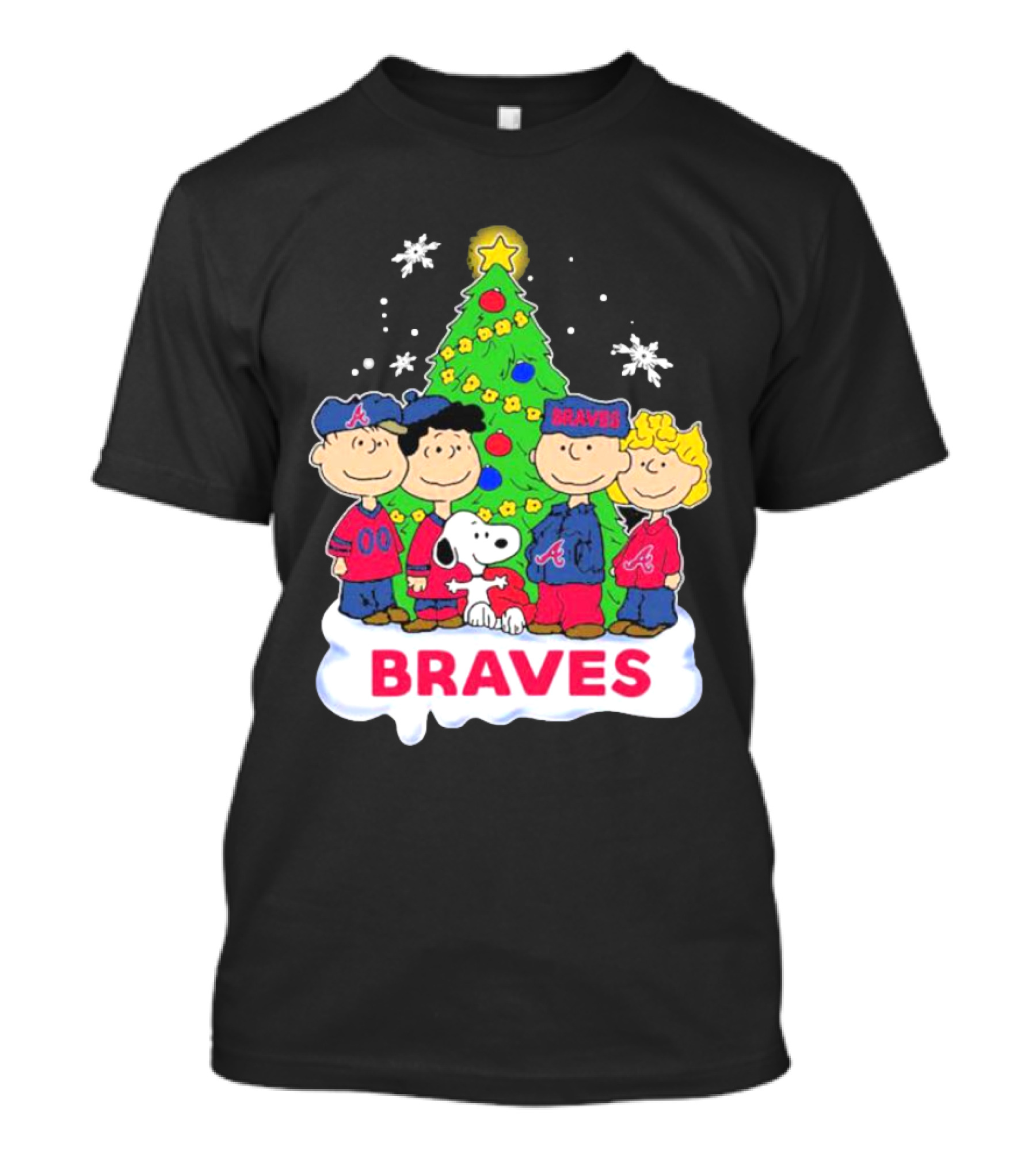 Atlanta Braves Peanuts Christmas Tree With Snoopy Characters T-Shirt