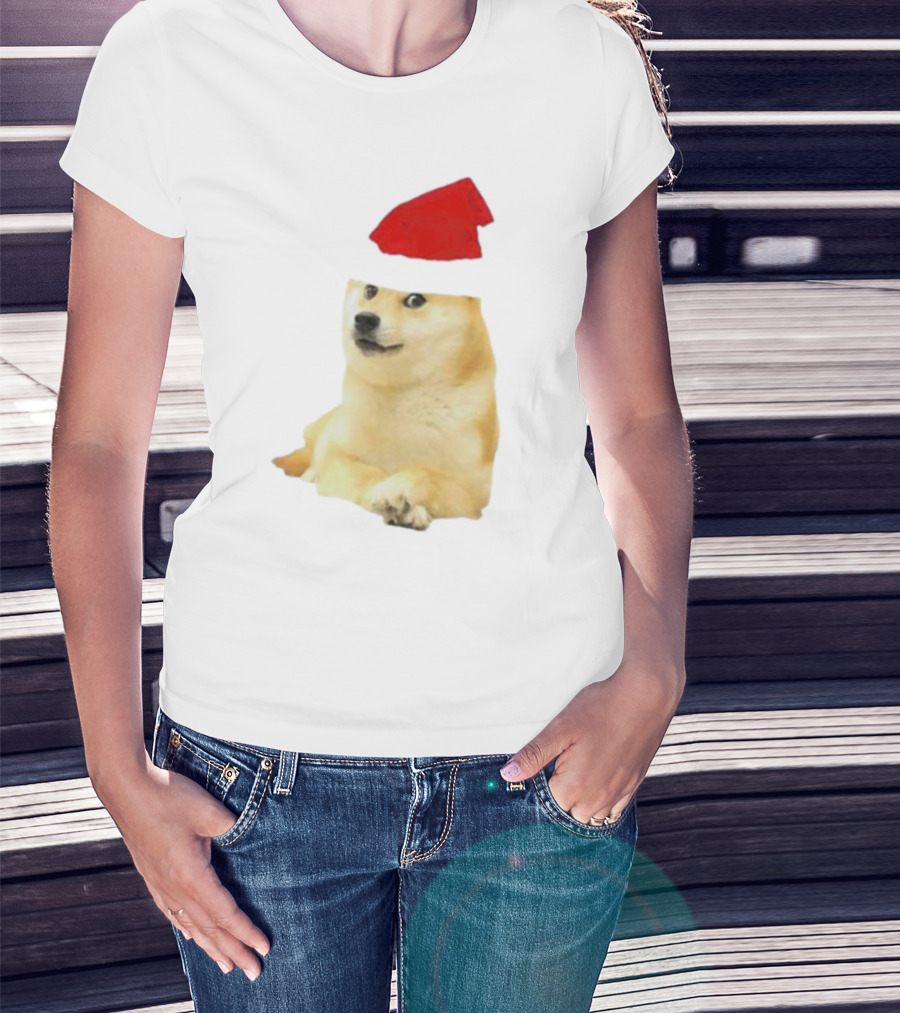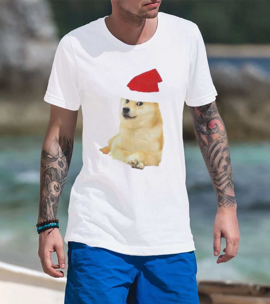 Dogecoin Christmas Santa Hat Meme T-Shirt