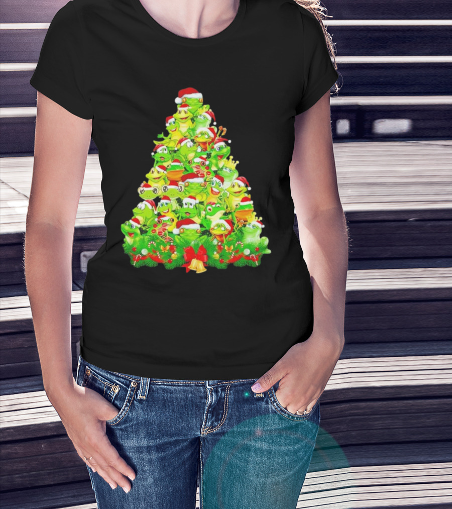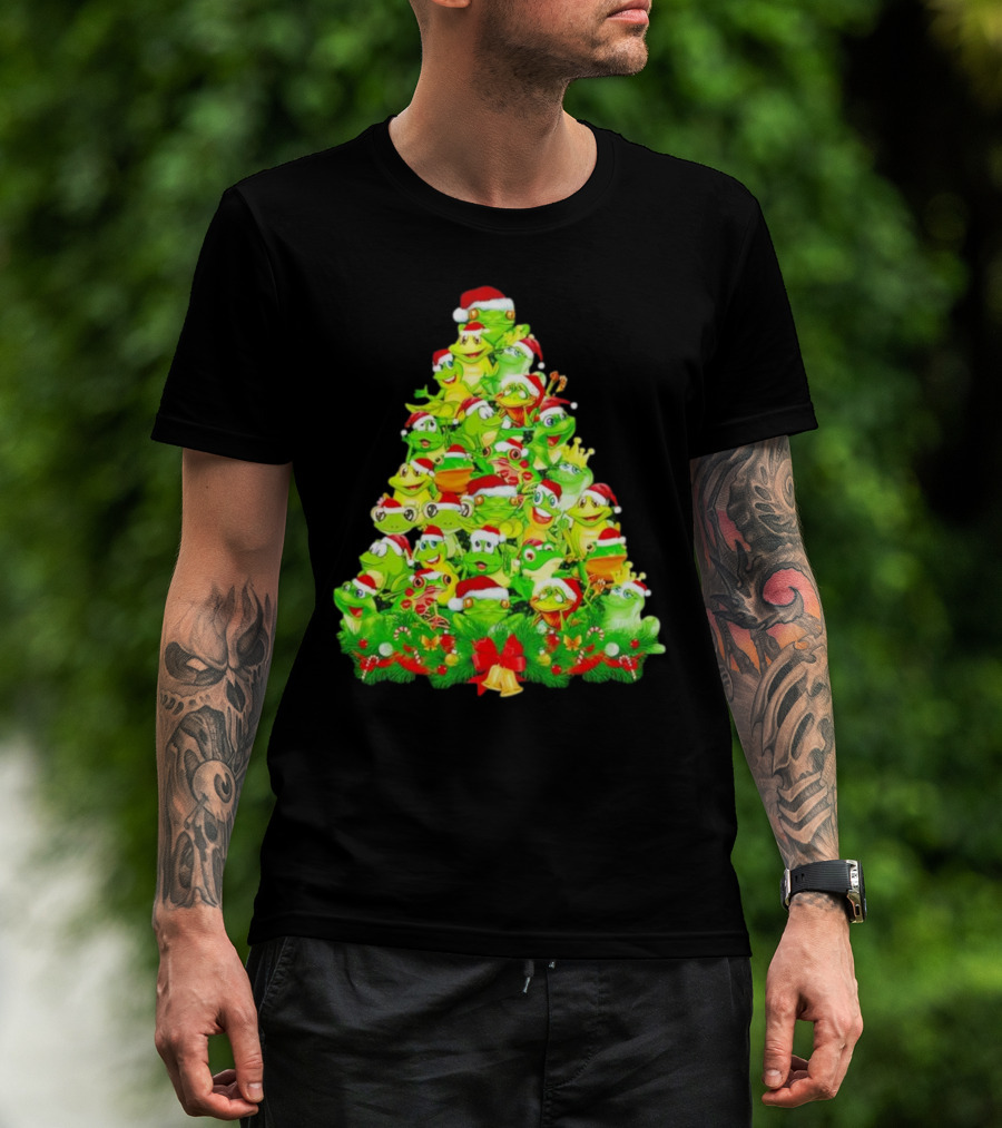 Frogs With Santa Hats Christmas Tree Holiday T-Shirt