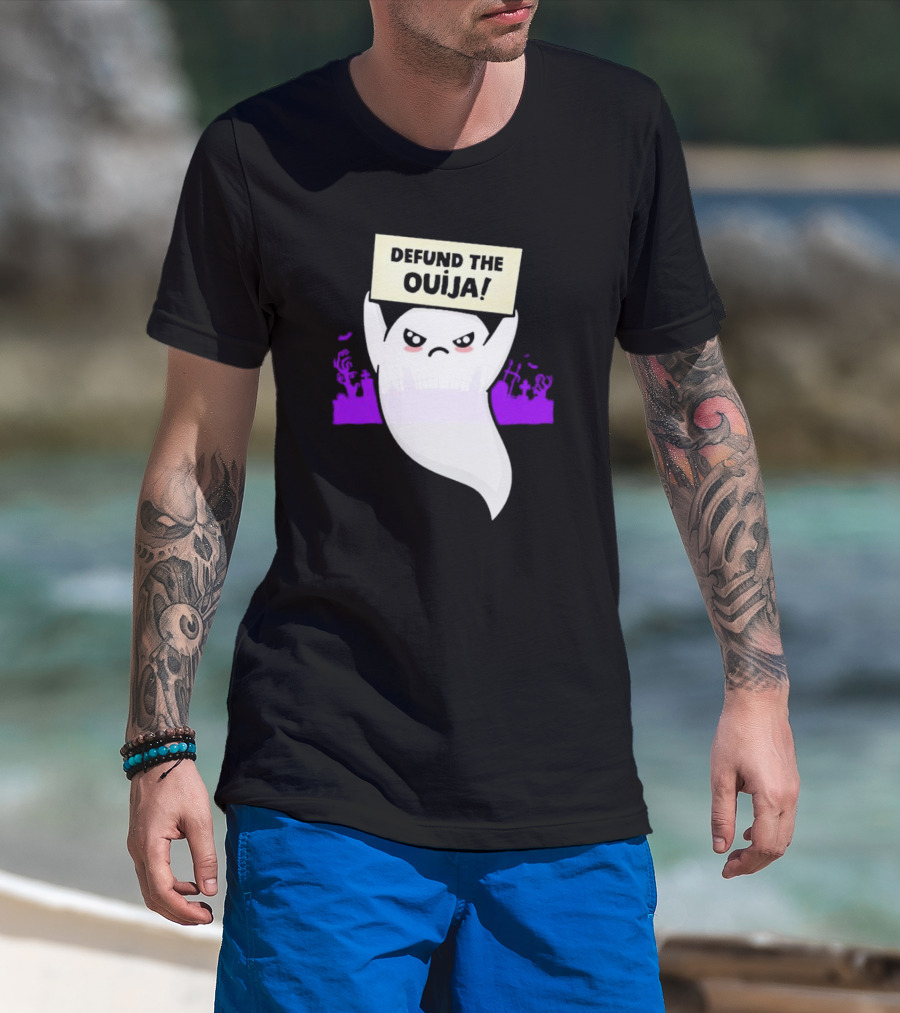 Defund The Ouija Angry Ghost Protest With Graveyard Background T-Shirt