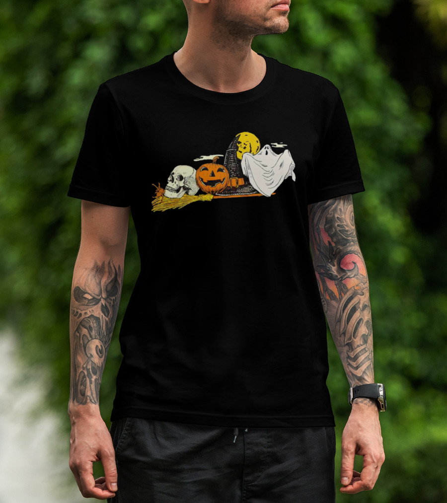 The Vintage Kentucky Halloween Ghost Pumpkin Skull Moon T-shirt is designed for everyday wear and a consistent fit. Fabric is pre-shrunk ring-spun cotton with durable stitching. See the size chart below for exact measurements.
