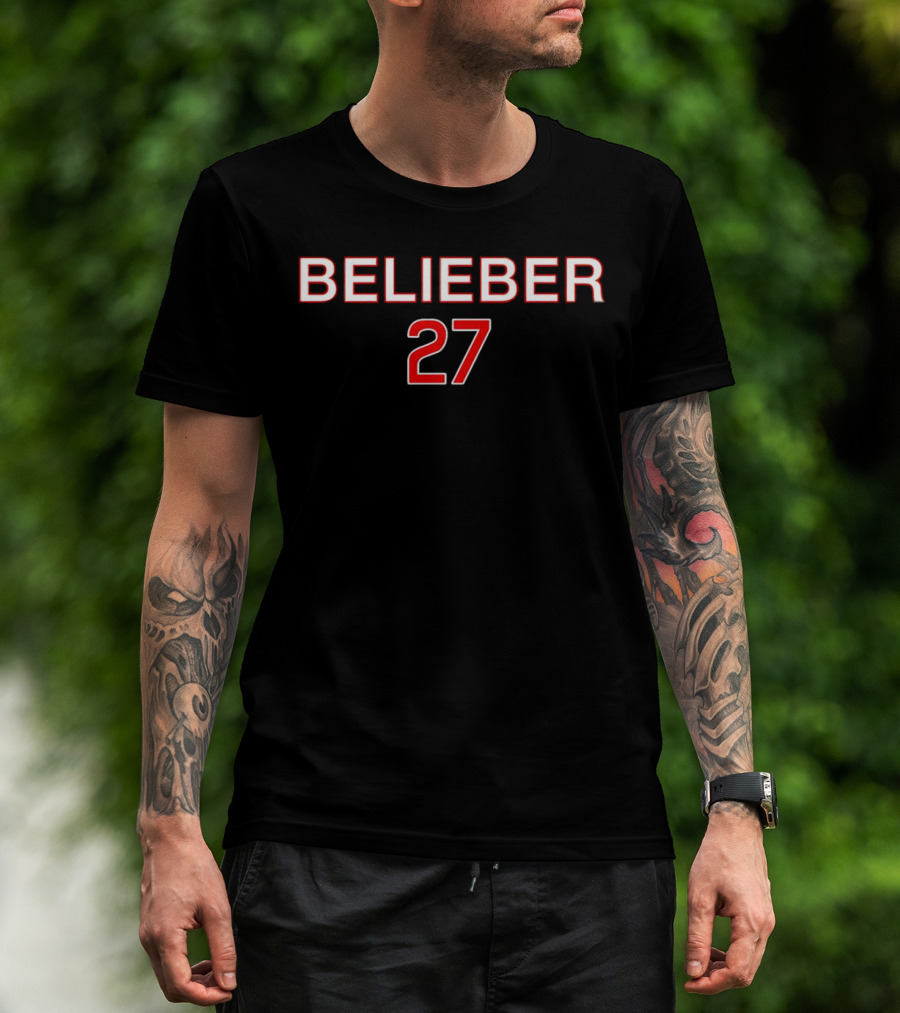 The BELIEBER 27 T-shirt is designed for everyday wear and a consistent fit. Fabric is pre-shrunk ring-spun cotton with durable stitching. See the size chart below for exact measurements.