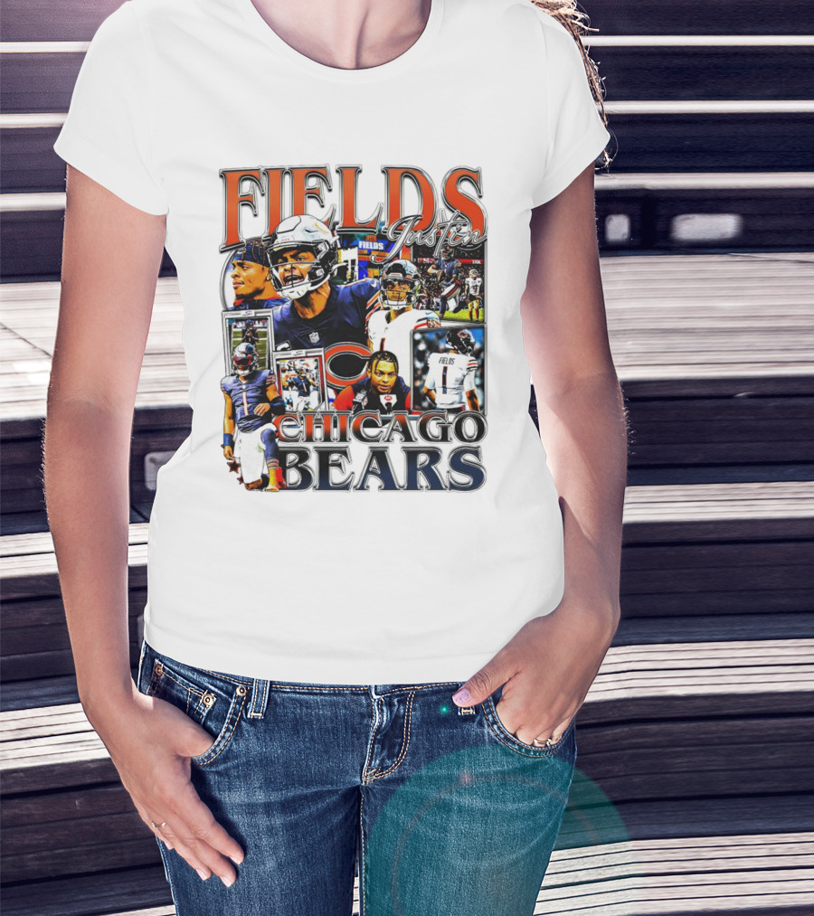 The Fields Justin Chicago Bears Football T-shirt is designed for everyday wear and a consistent fit. Fabric is pre-shrunk ring-spun cotton with durable stitching. See the size chart below for exact measurements.