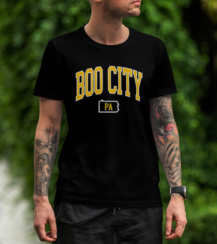 The Boo City PA Pennsylvania State Outline T-shirt is designed for everyday wear and a consistent fit. Fabric is pre-shrunk ring-spun cotton with durable stitching. See the size chart below for exact measurements.