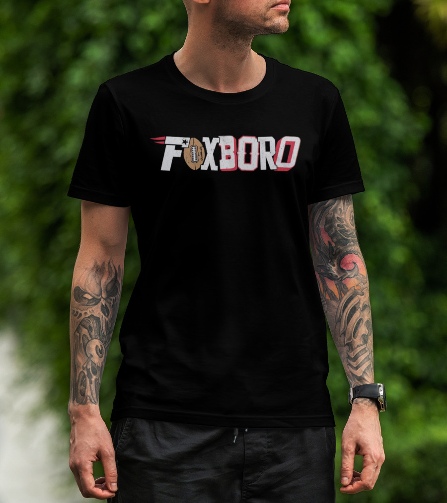 Foxboro Patriots Football Text Logo With Leather Football And Star T-Shirt