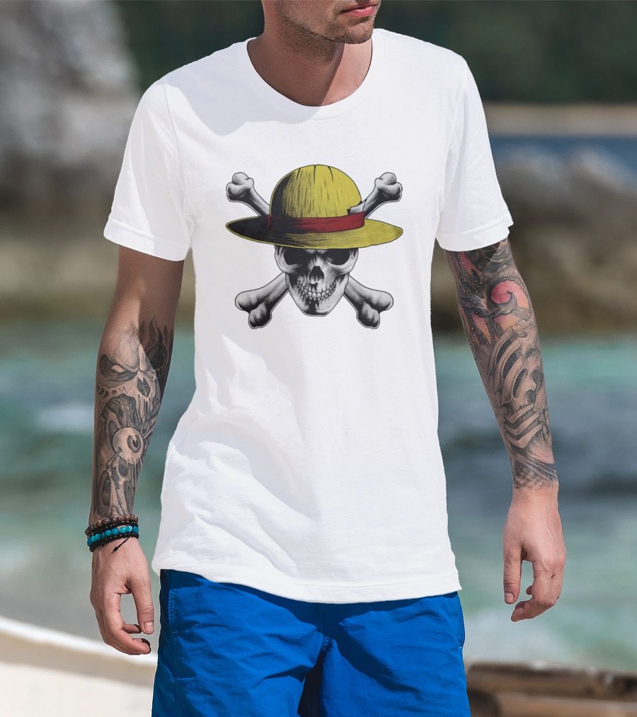 The Straw Hat Jolly Roger Pirate Skull and Crossbones T-shirt is designed for everyday wear and a consistent fit. Fabric is pre-shrunk ring-spun cotton with durable stitching. See the size chart below for exact measurements.