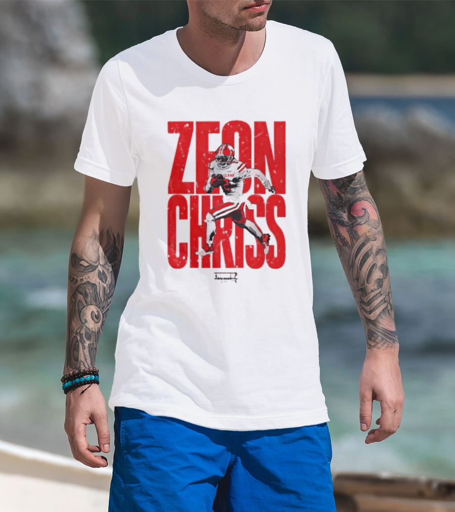 Zeon Chriss Football Caricature In Red Text And Black T-Shirt