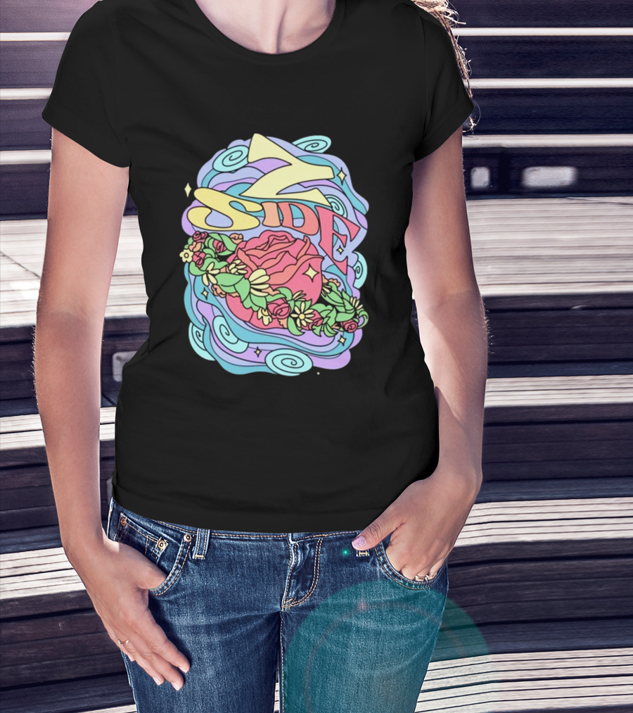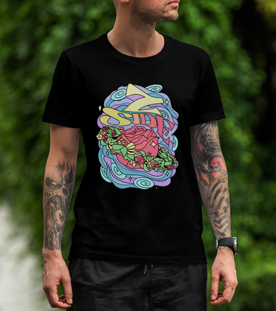 The Z Side Colorful Swirl Rose Floral T-shirt is designed for everyday wear and a consistent fit. Fabric is pre-shrunk ring-spun cotton with durable stitching. See the size chart below for exact measurements.