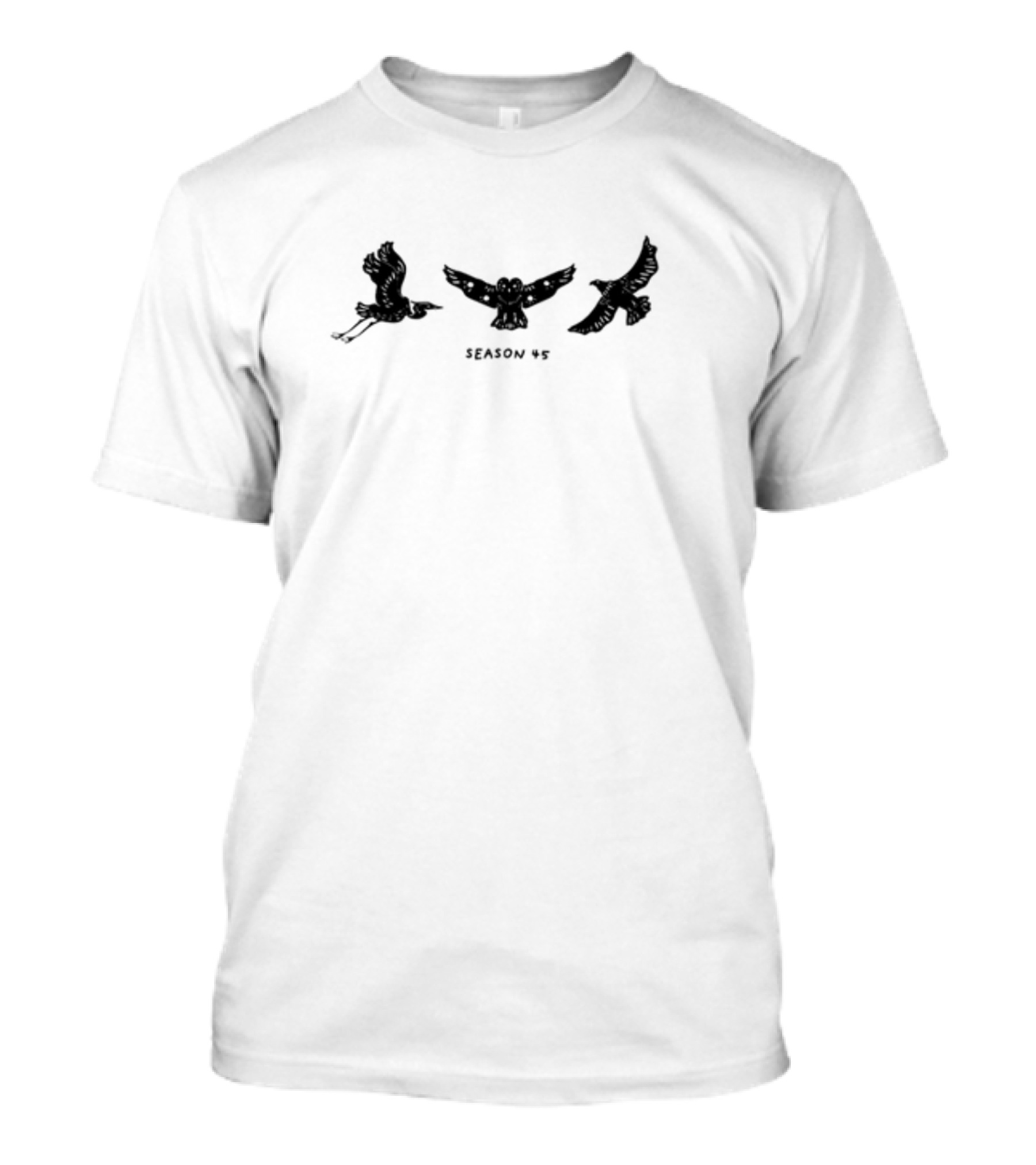 The Season 45 Icons Bird T-shirt is designed for everyday wear and a consistent fit. Fabric is pre-shrunk ring-spun cotton with durable stitching. See the size chart below for exact measurements.