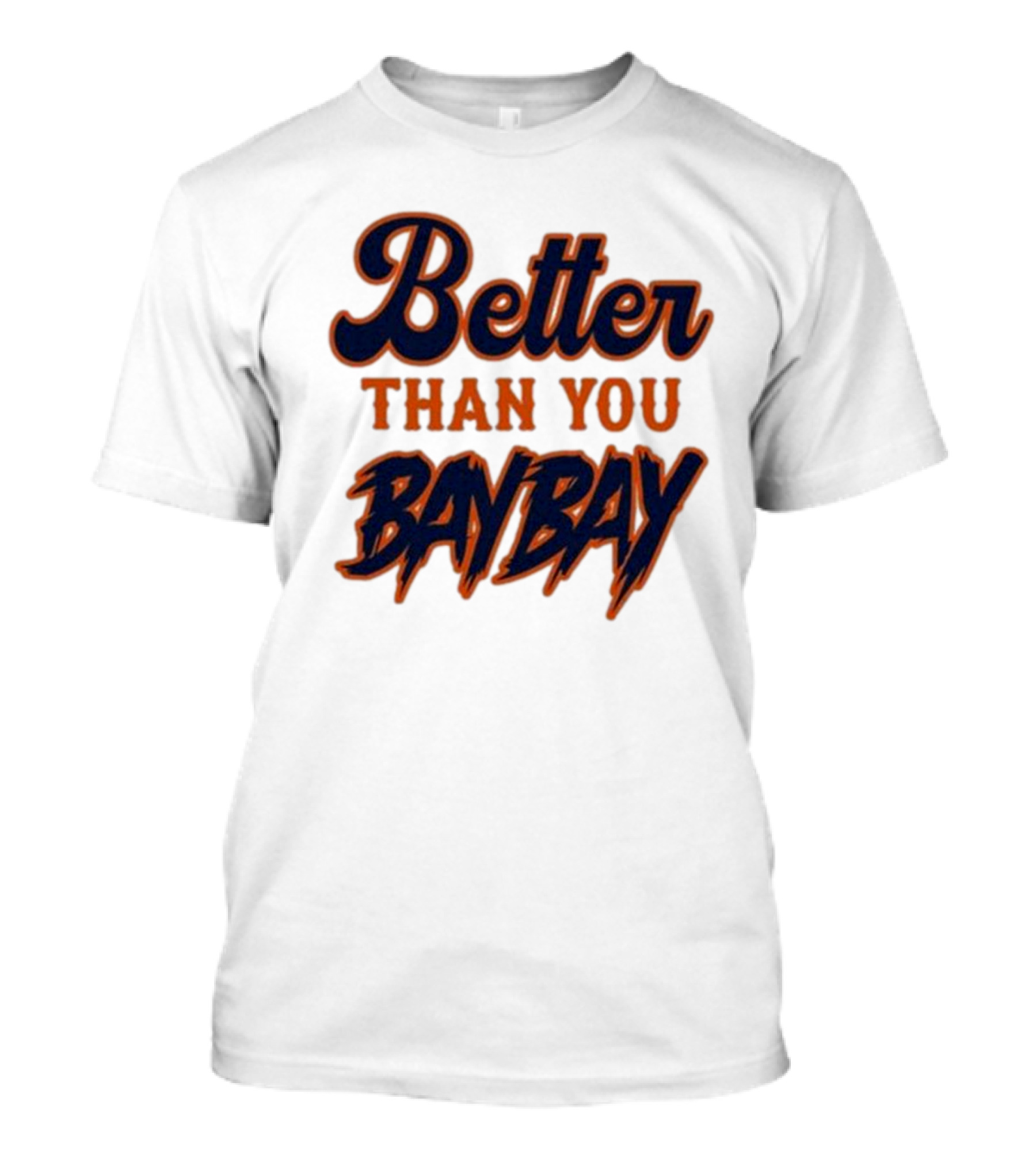 The Better Than You Bay Bay Mets Variant T-shirt is designed for everyday wear and a consistent fit. Fabric is pre-shrunk ring-spun cotton with durable stitching. See the size chart below for exact measurements.