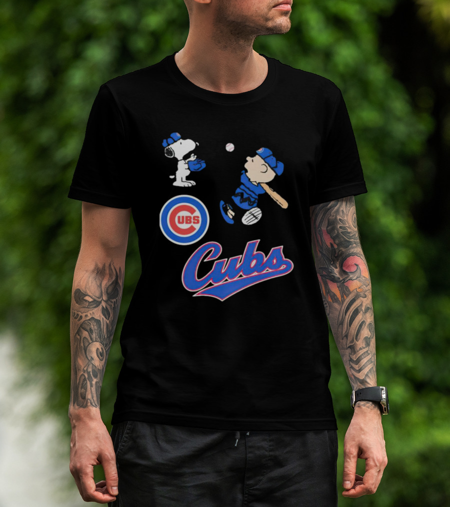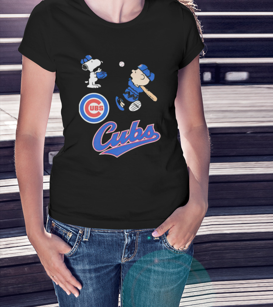 Snoopy And Charlie Brown In Chicago Cubs Baseball Uniforms T-Shirt
