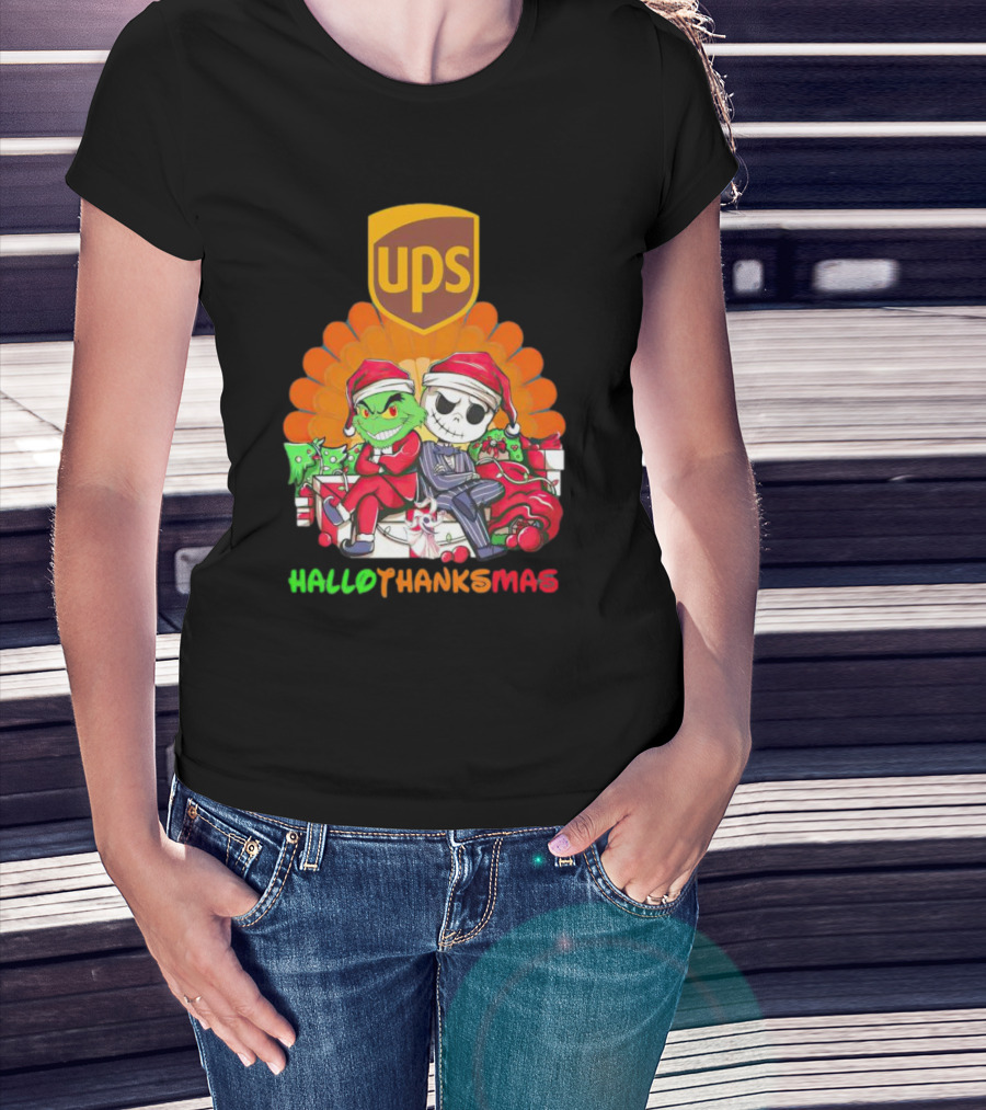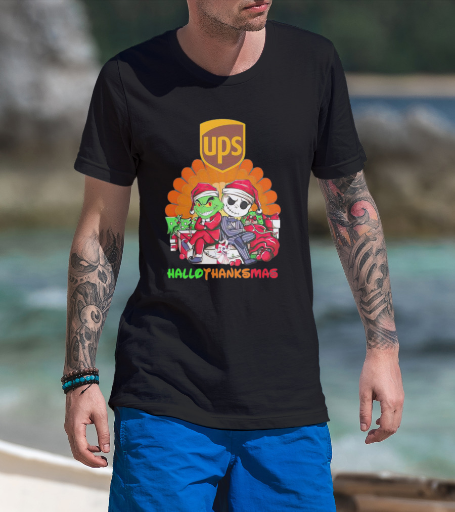 Grinch Jack Skellington Ups HalloThanksMas T-Shirt