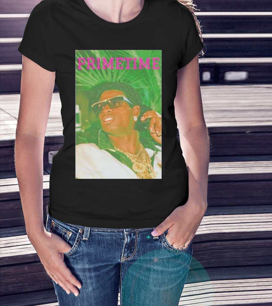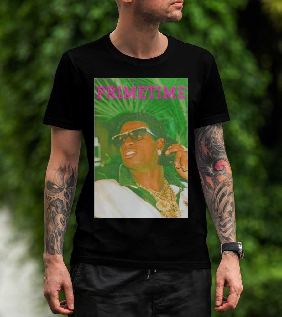 PRIMETIME Deion Sanders Sunglasses Gold Chains Retro Vibe T-Shirt